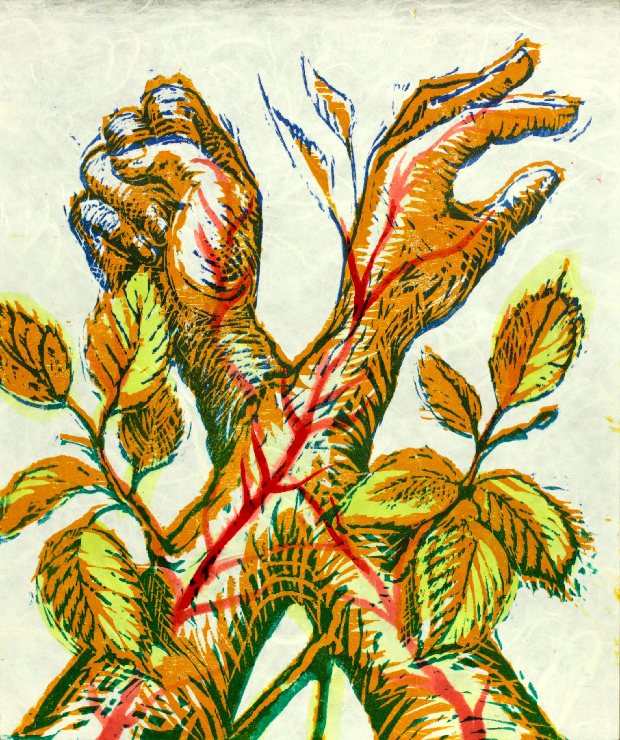 Dřevořez a inkoust na japonském papíře